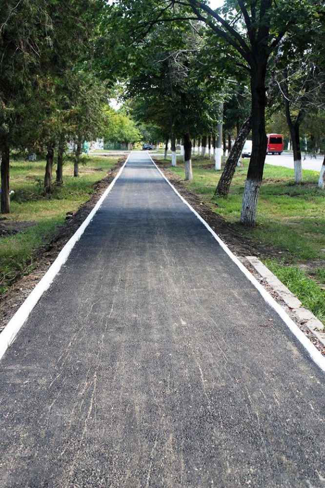 Proiectul a prevazut si asfaltarea unei portiuni de trotuar pentru pietoni.
